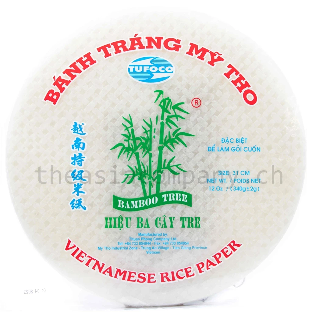 Wenn deine kulinarische Kreativität mehr Platz braucht, ist das BAMBOO TREE Reispapier mit 31cm Durchmesser die perfekte Wahl. Hergestellt in Vietnam, überzeugt es durch seine zarte, fast transparente Struktur und bietet die ideale Basis für grosszügige Sommerrollen, kunstvolle Wraps oder kreative Vorspeisen.