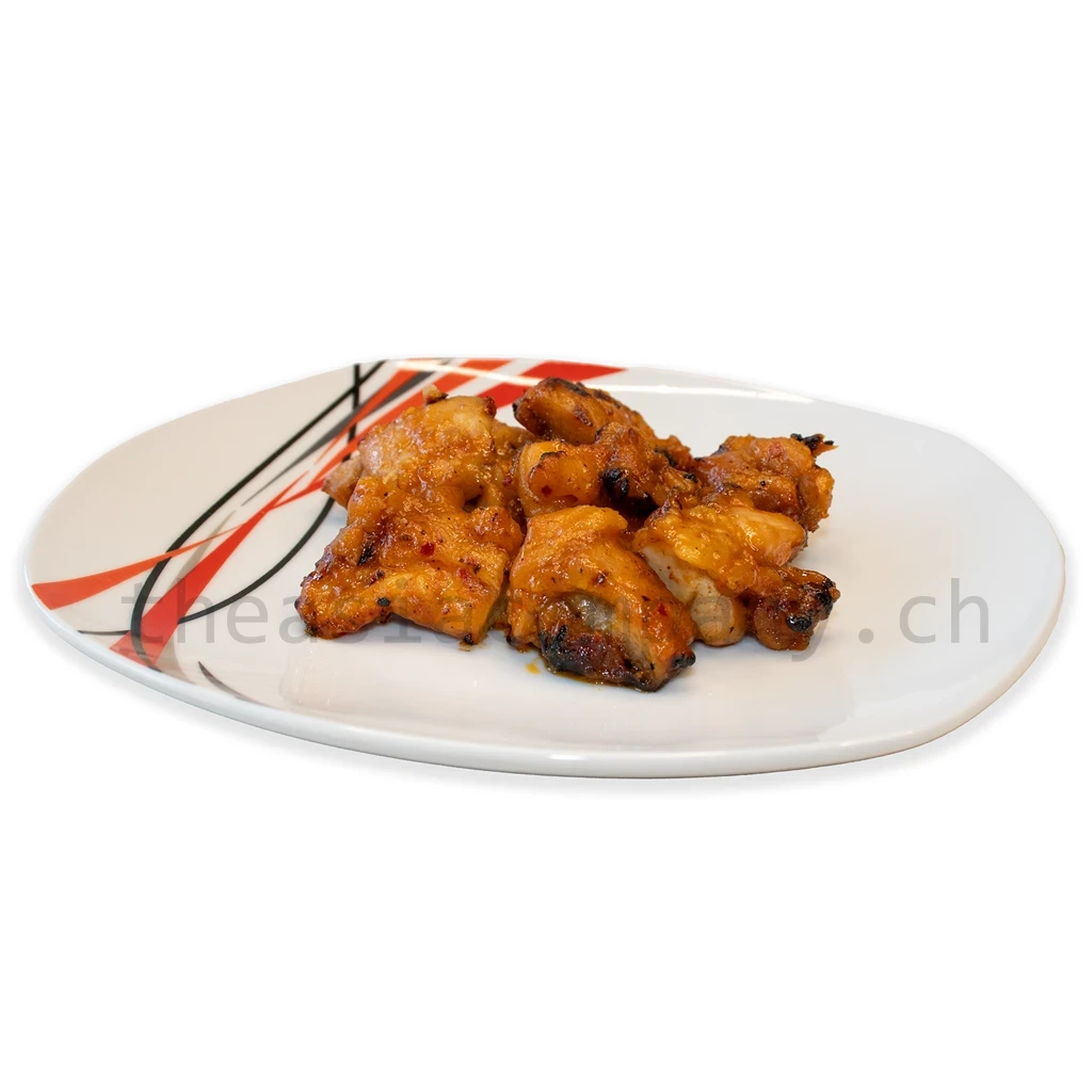 Die GRILL CHOICE Chicken Chunks Mango Delight verbinden zartes Hähnchenfleisch mit dem exotischen Aroma sonnengereifter Mango. Diese gegrillten Chunks aus Thailand bieten ein süss-saures Geschmackserlebnis mit feiner Würze aus Ingwer, Chili, Kurkuma und Koriander. Perfekt für alle, die asiatische Küche lieben.