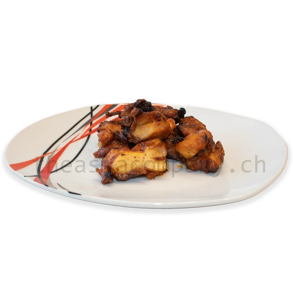 Die GRILL CHOICE Chicken Chunks TexMex bringen den Geschmack der südwestamerikanischen Küche direkt auf den Teller. Zartes Hühnerbeinfleisch, verfeinert mit einer kräftigen TexMex-Gewürzmischung aus Cayenne, Paprika, Knoblauch, Chili und Kreuzkümmel. Perfekt gegrillt für ein intensives Aroma und eine saftige Textur.