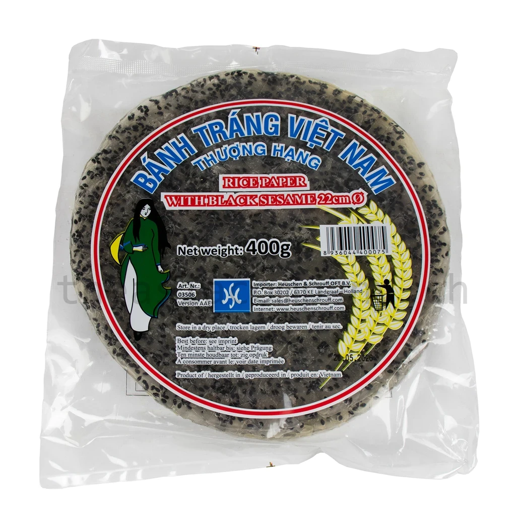 Dieses Reispapier aus Vietnam ist mehr als nur eine Hülle – es ist die Bühne für frische, aromatische Zutaten. Mit seiner zarten, leicht transparenten Struktur und den sichtbaren Sesamsamen bringt es nicht nur Geschmack, sondern auch Charakter in jedes Gericht. Der leicht nussige Sesam-Touch verleiht deinen Sommerrollen, Snacks oder Fusion-Kreationen das gewisse Etwas.