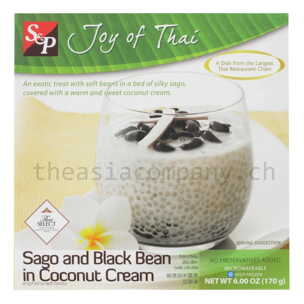 Ein Dessertklassiker aus Thailand mit Charakter: Die S & P Sago Bohnen in Kokosnussmilch vereinen zarte Sago-Kügelchen, aromatische schwarze Bohnen und junges Kokosnussfleisch in einer cremigen Kokosmilch. Die Kombination aus mildem Geschmack und angenehmer Textur macht dieses Dessert zu einem besonderen Genussmoment ideal für Liebhaber exotischer Süssspeisen.